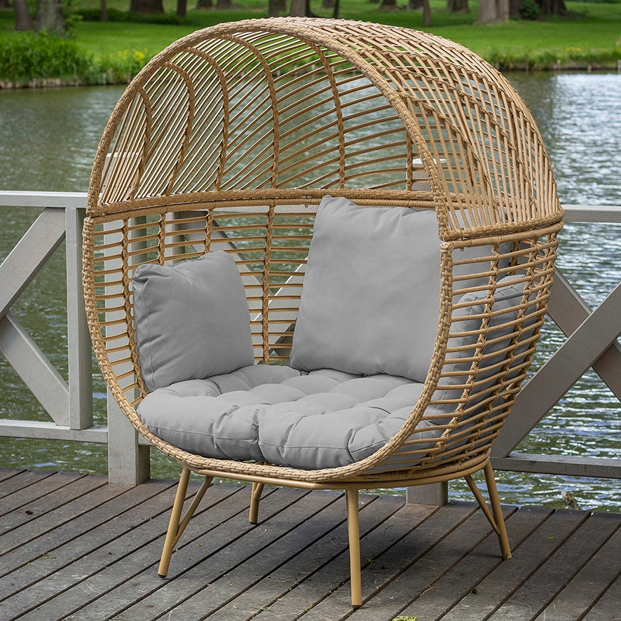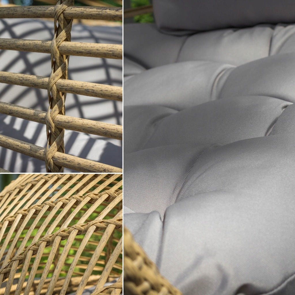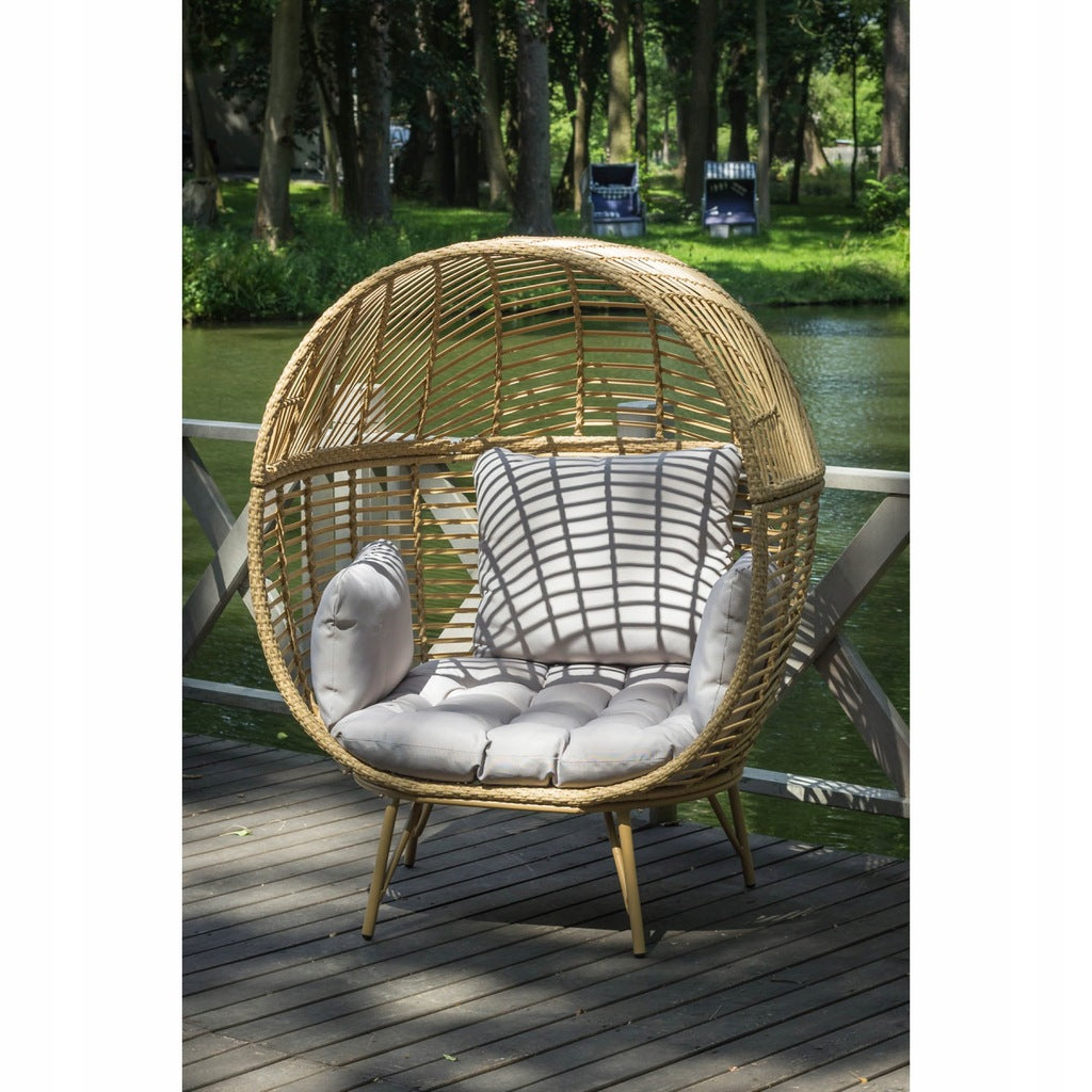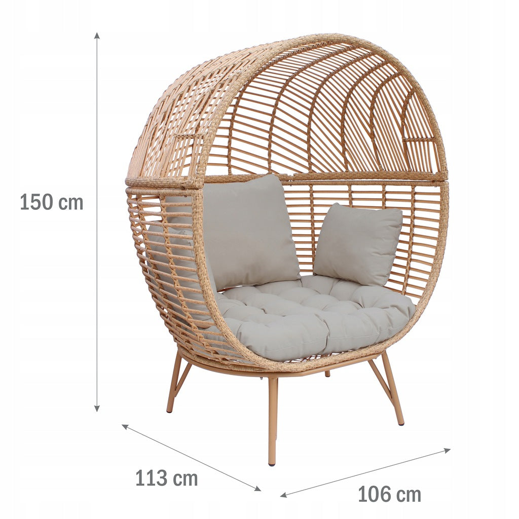 Jo sėdynė ir atlošai pagaminti iš natūralaus atspalvio rotango, dėl kurio kartu su šviesiai smėlio pagalvėlių spalva MARTINIQUE fotelis atrodo itin elegantiškai.