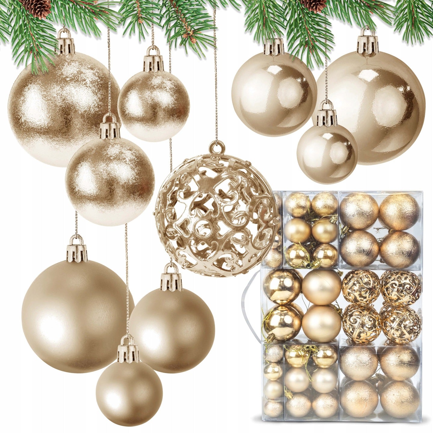 100 vnt. šampano spalvos Kalėdinių žaisliukų rinkinys