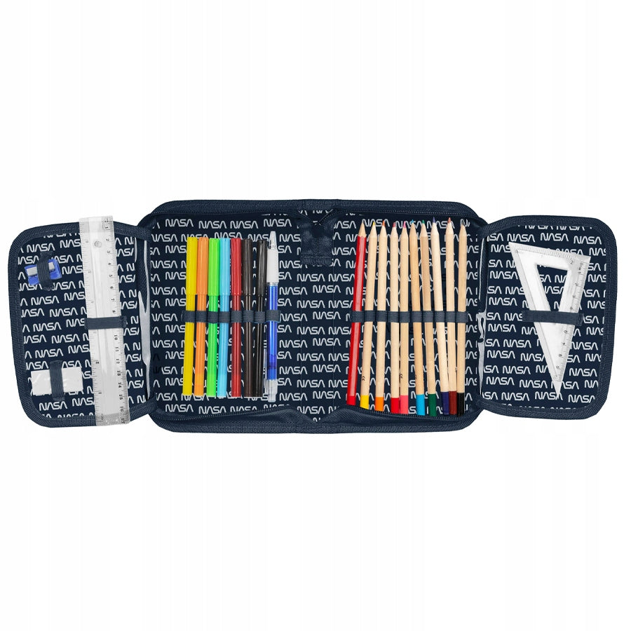 Mokyklinis pieštukų dėklas su aksesuarais iš naujausios PASO NASA kolekcijos.Pieštukų dėklas yra vienos kameros su spalvingu interjeru ir yra su dviem atvartais su priedais. Viduje rasite: