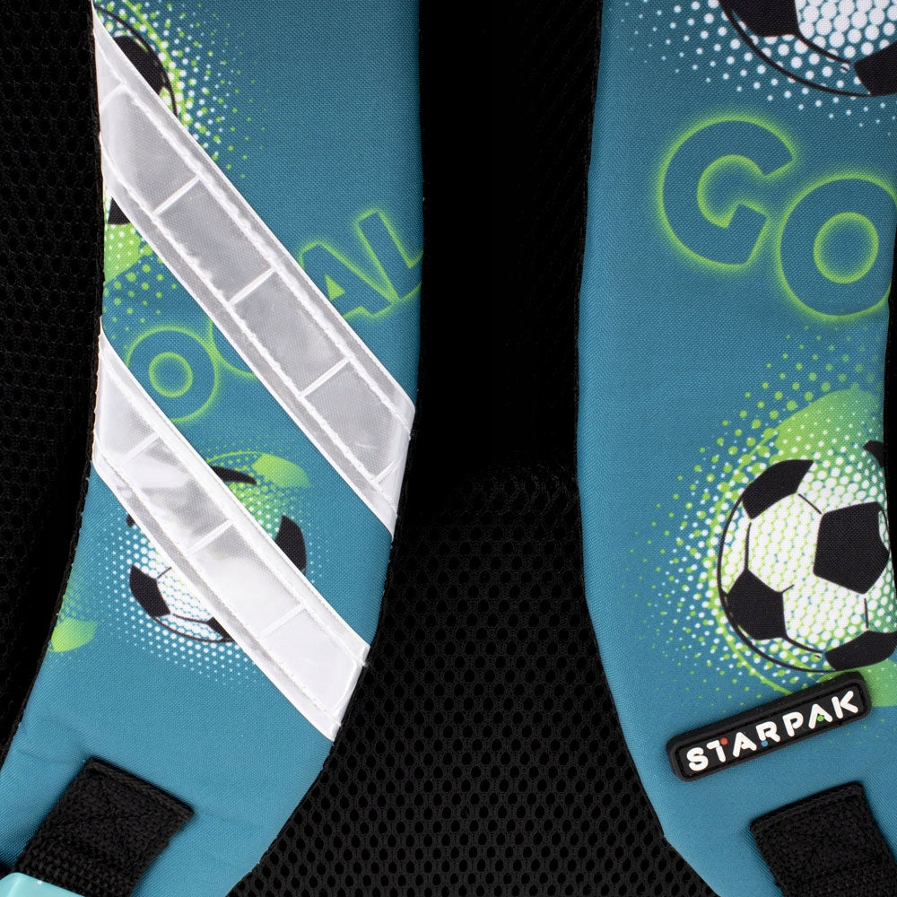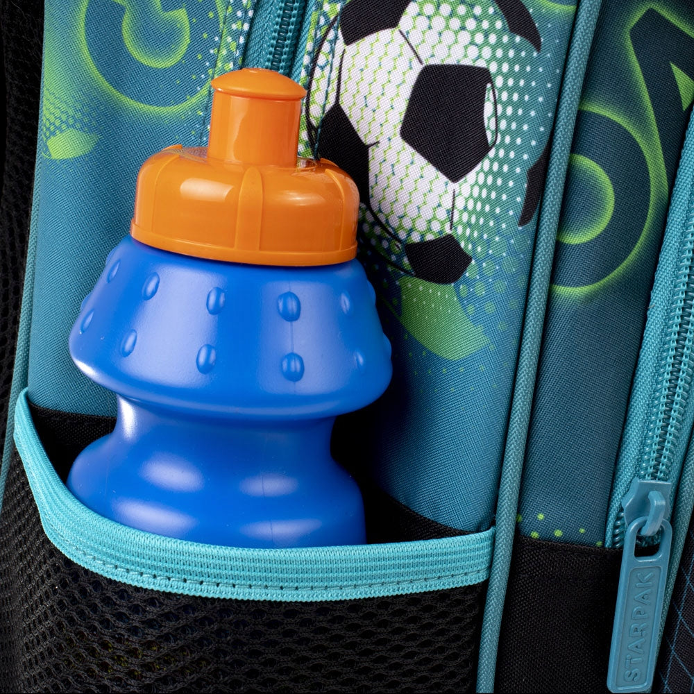 Pagrindinis STARPAK kuprinės skyrius buvo išklotas specialiu, sustiprintu ir lengvai valomu pamušalu. Skyrius labai erdvus. Jame tilps viskas, ko reikia mokykloje. Be to, 2 priekinės kišenės palengvina tvarkos palaikymą ir pagerina organizavimą. Abiejose kuprinės pusėse įdėjome tinklines kišenes buteliams su gėrimu. Kišenės specialiai sutvirtintos patvaria medžiaga.