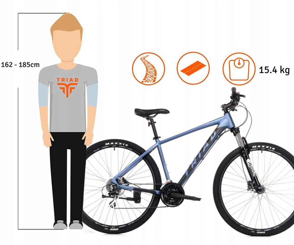 Padangos- Triad M7 yra sumontuota pora Maxxis / DSI 29 "x 2.1 padangų, užtikrinančių optimalų sukibimą tiek su keliu, tiek su takais. Padangos yra plačios ir užtikrina gerą sukibimą šlapioje ir sausoje vietoje.