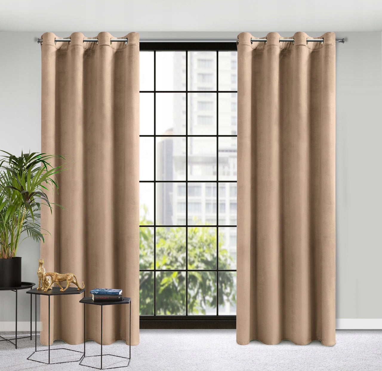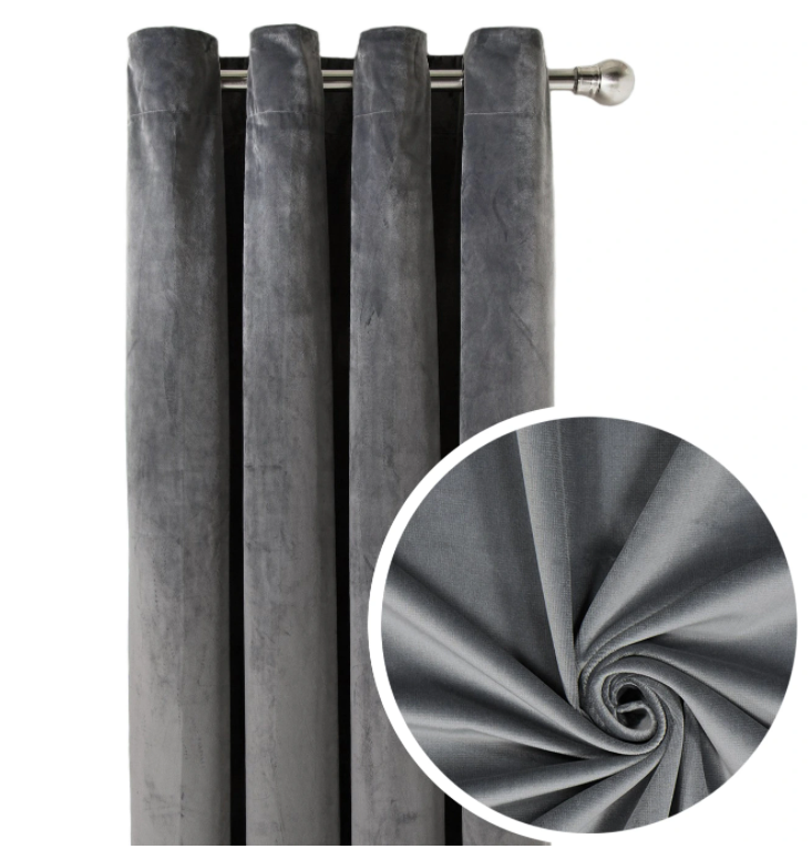 Aksominės užuolaidos itin elegantiškos, pagamintos iš aukščiausios kokybės veliūro, kuris yra purus, minkštas ir itin malonus liesti . Dėl savo išvaizdos jis laikomas prabangia medžiaga. Žiedų skersmuo 4cm.