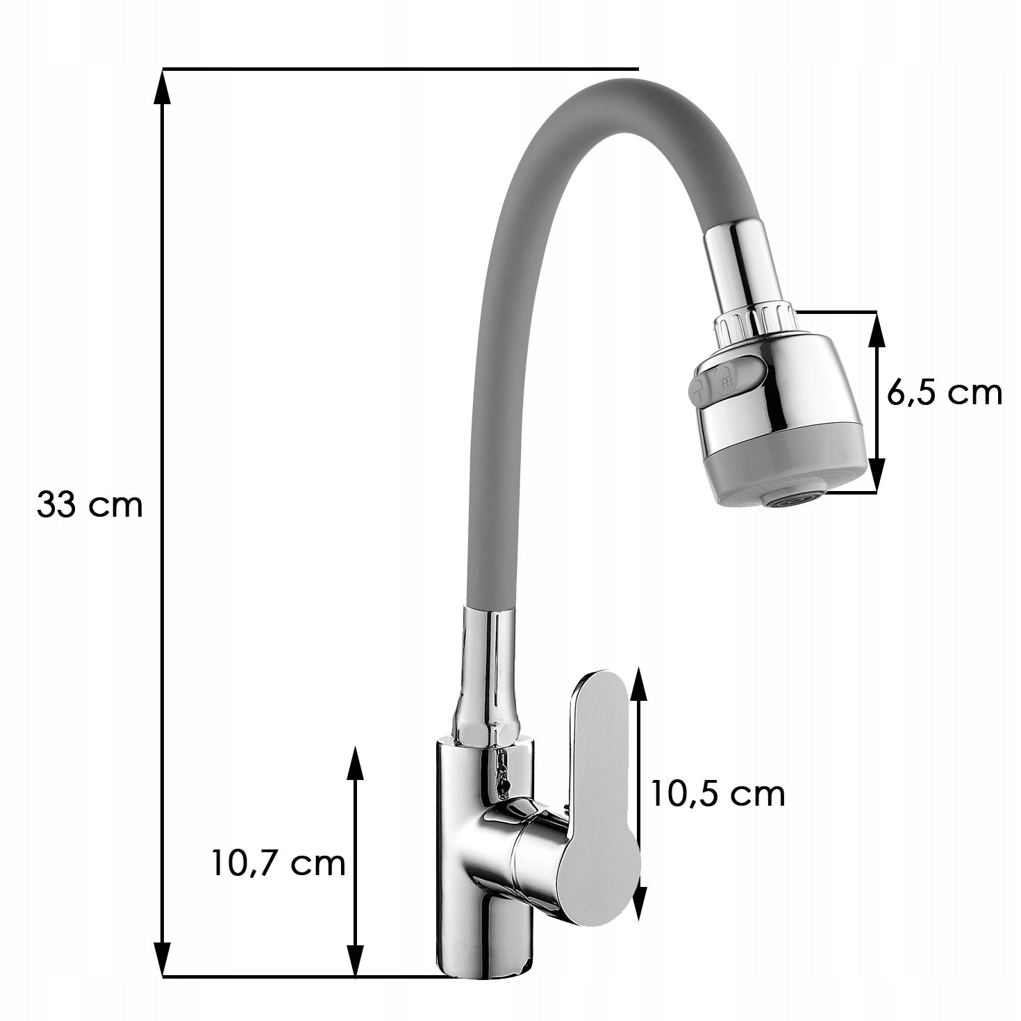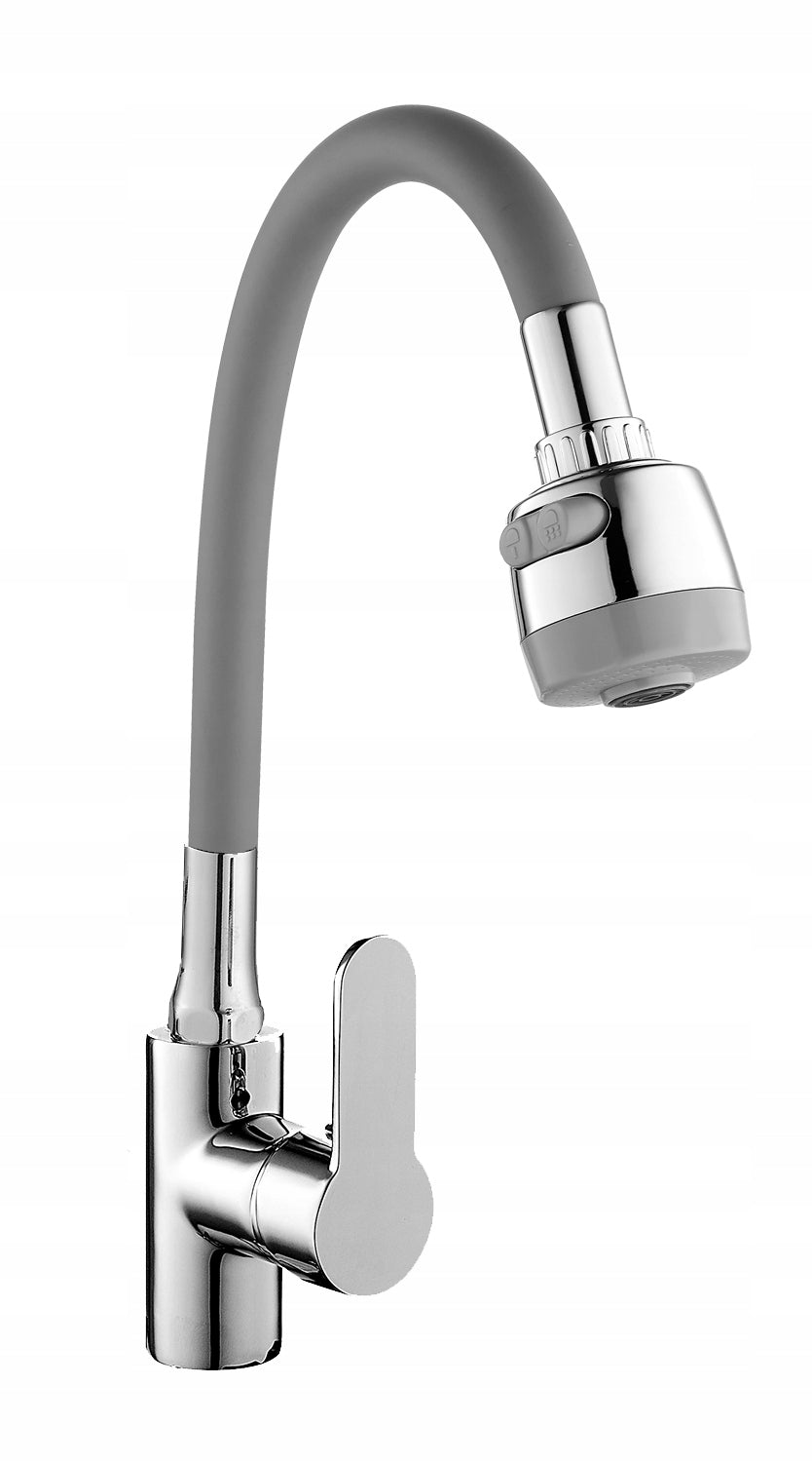 Kriauklės maišytuvas, vienos svirties, stovimas, keraminė galvutė. Turi ilgą, judantį, lankstų pilką silikoninį snapelį. Maišytuvas aprūpintas dviejų srovių antgaliu, kurio dėka galime pakeisti vandens srovę iš klasikinės į difuzinę. Aeravimo antgalis – aeratorius – sumažina vandens sąnaudas iki 40%. Komplekte yra dvi pintos žarnos (40 cm F 3/8 ") ir visi surinkimui reikalingi elementai.