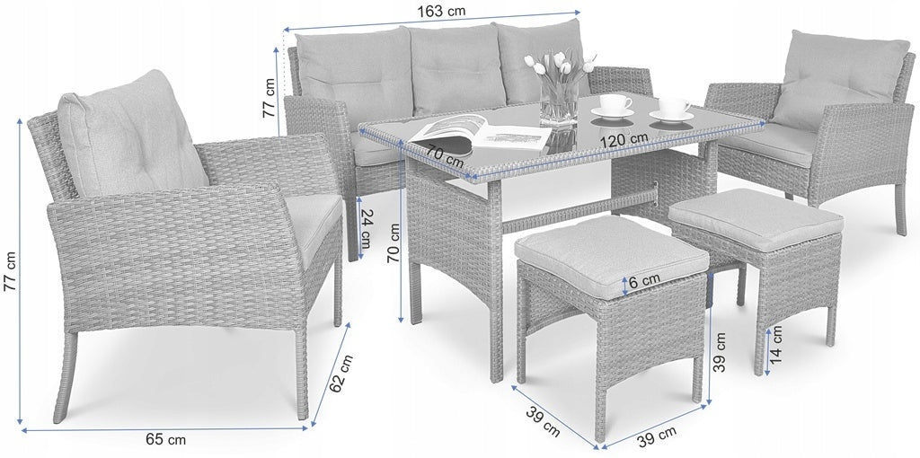 dėl aukštos kokybės medžiagų naudojimo šie baldai pasižymi ilgaamžiškumu, atsparumu oro sąlygoms ir UV spinduliuotei.