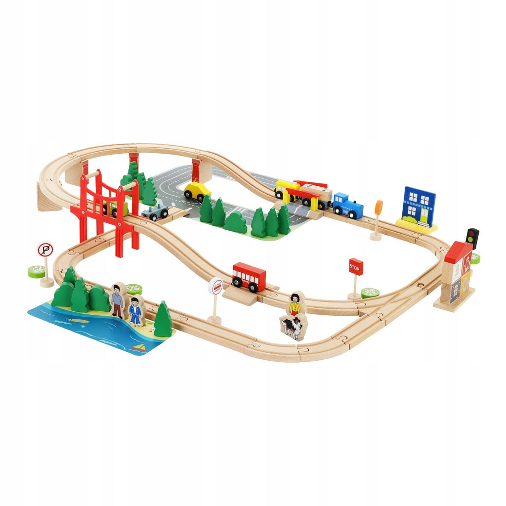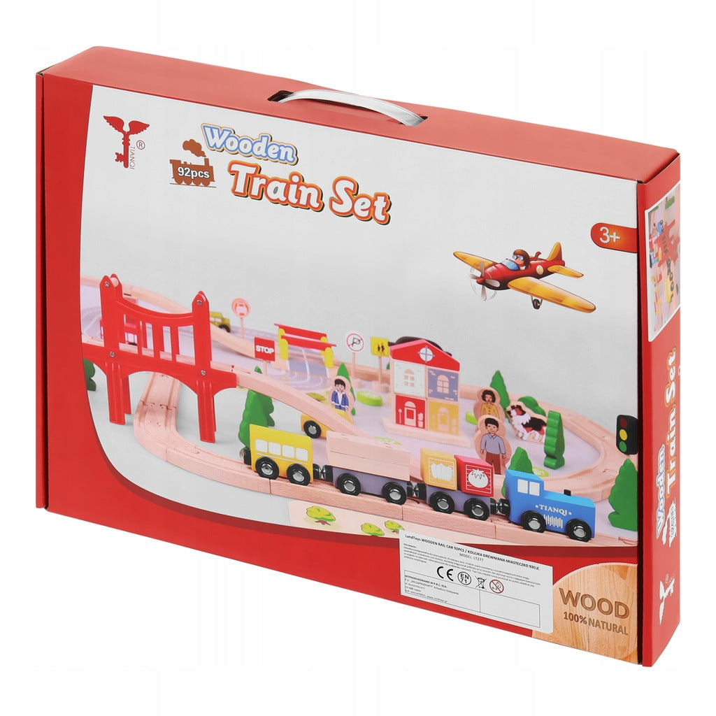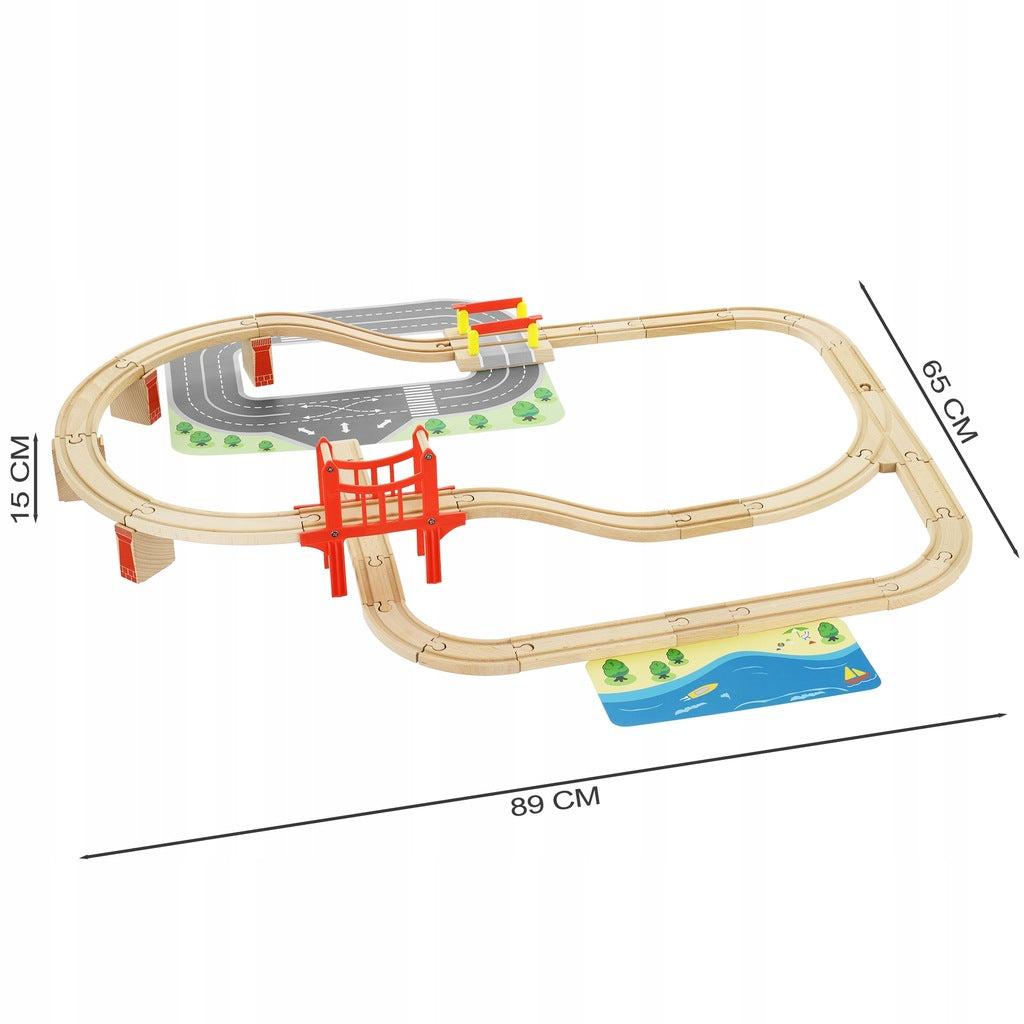 Medinis traukinio su bėgiais komplektas LandToys 92 vnt.