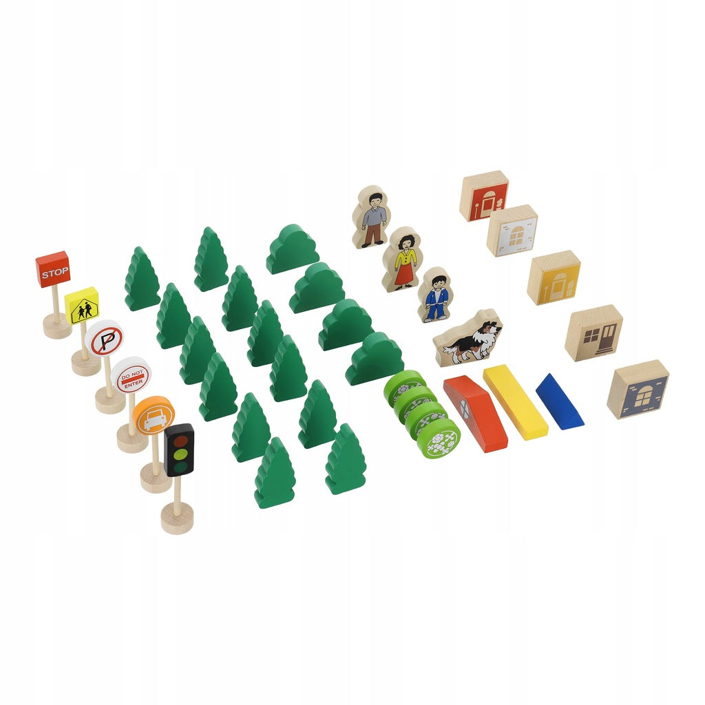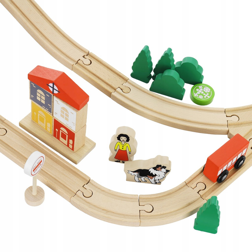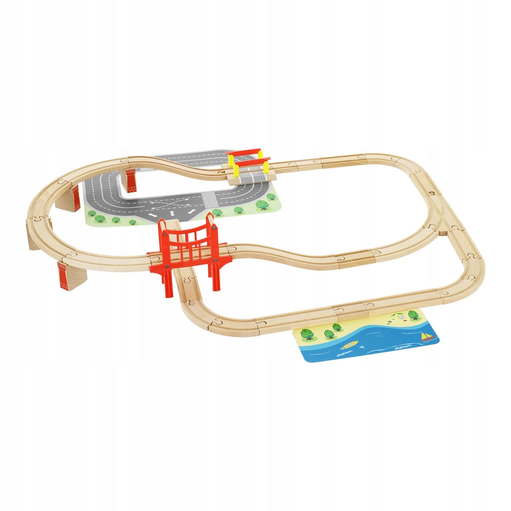 Medinis traukinio su bėgiais komplektas LandToys 92 vnt.