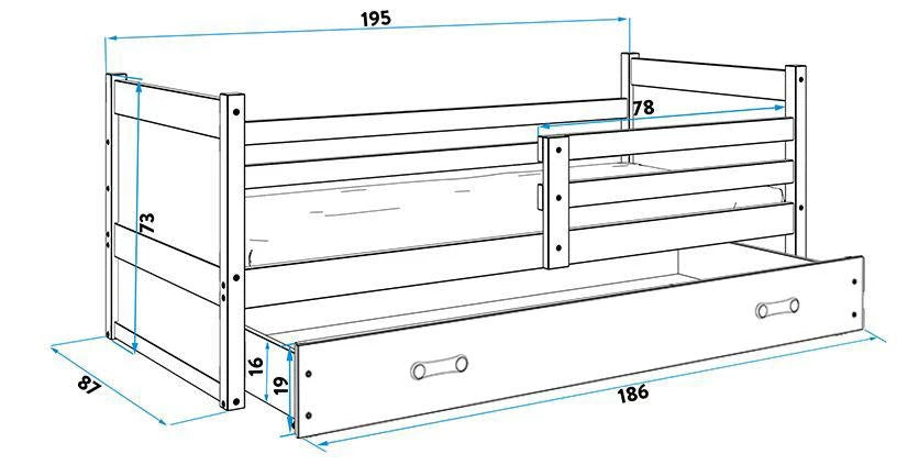 Lovos rėmas – iš pušies medienos, dažytas vandeniniu laku.