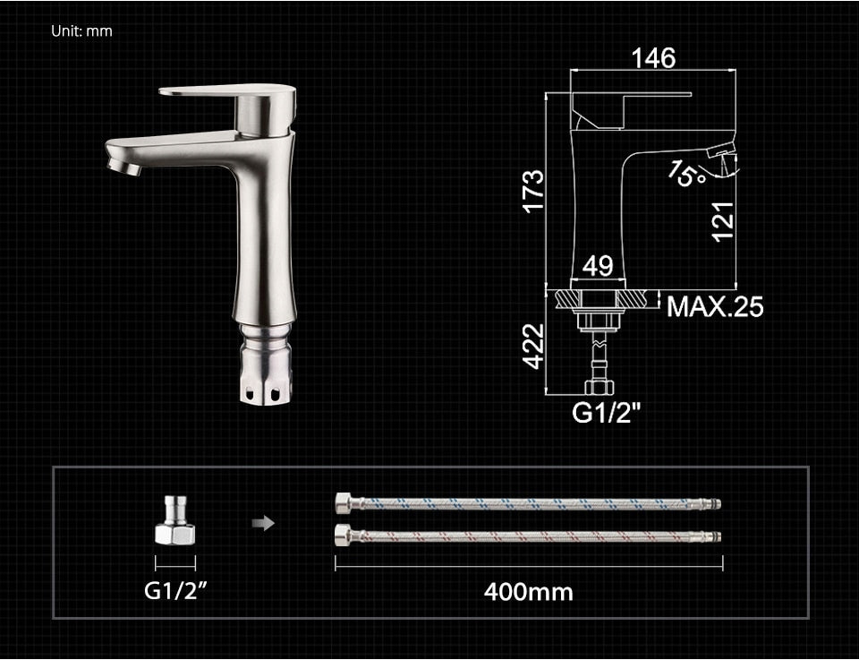 Korpuso medžiaga: nerūdijantis plienas (SUS 304)