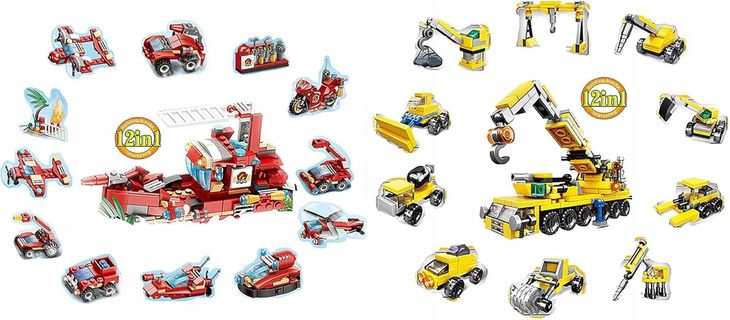 Statybinių blokų ekskavatorius, traktorius, vandens gelbėjimo transporto priemonės.
