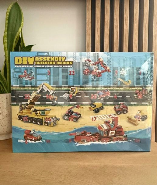 24 mažų automobilių figūrėlės, kurias galima sujungti į didelę transporto priemonę ir povandeninį laivą.