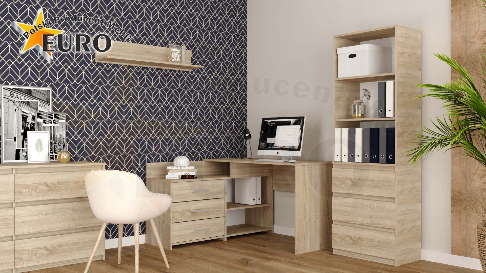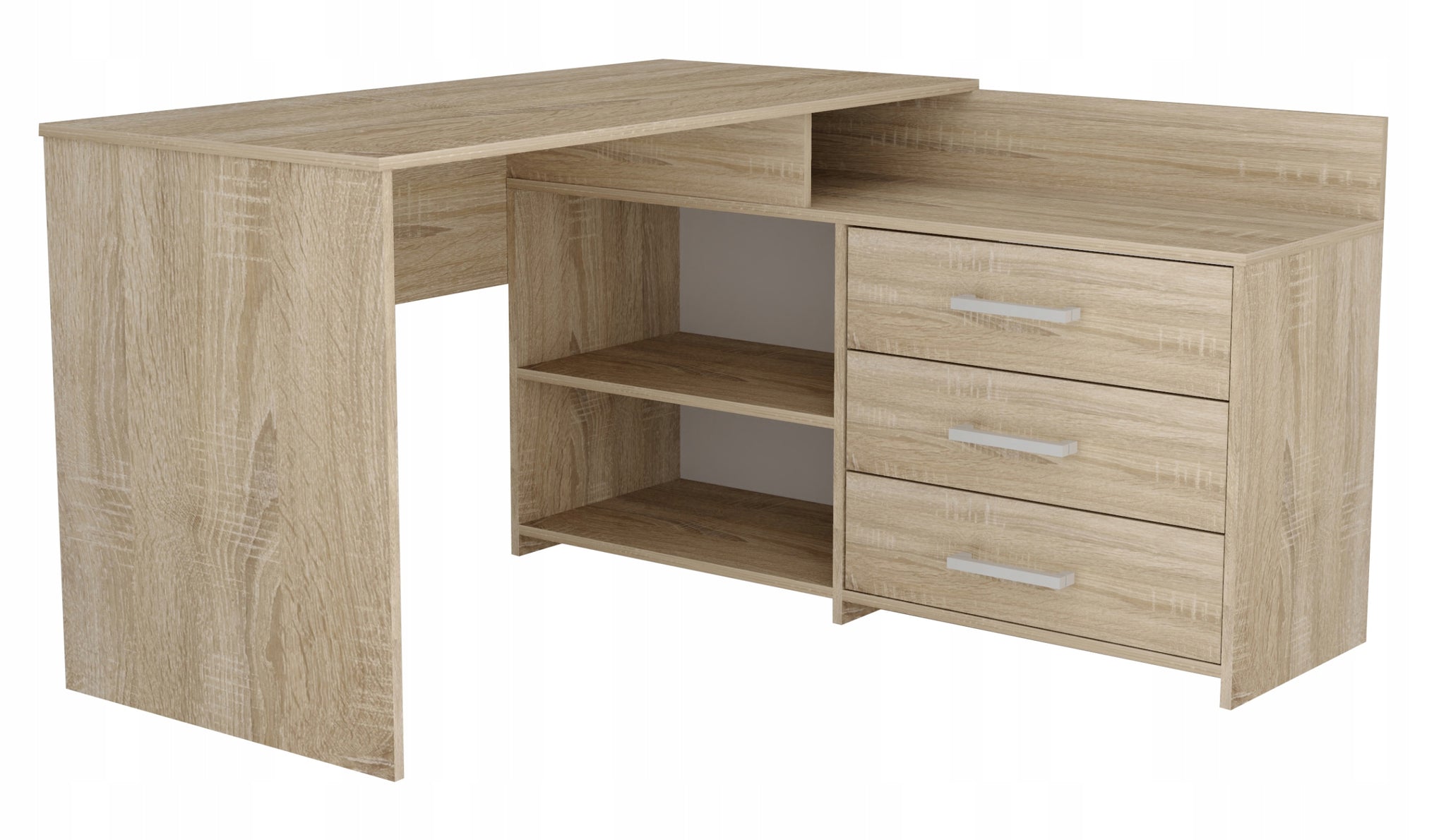 Siūlome Jums modernų rašomąjį stalą, skirtą kambariui, biurui ar studijai. Dėl savo kampinio dizaino jis tiks net mažose patalpose, todėl suteiks daug vietos biuro ir kompiuterių reikmenims tvarkyti. Stalviršis užtikrina patogų darbą tiek su nešiojamu, tiek su staliniu kompiuteriu.