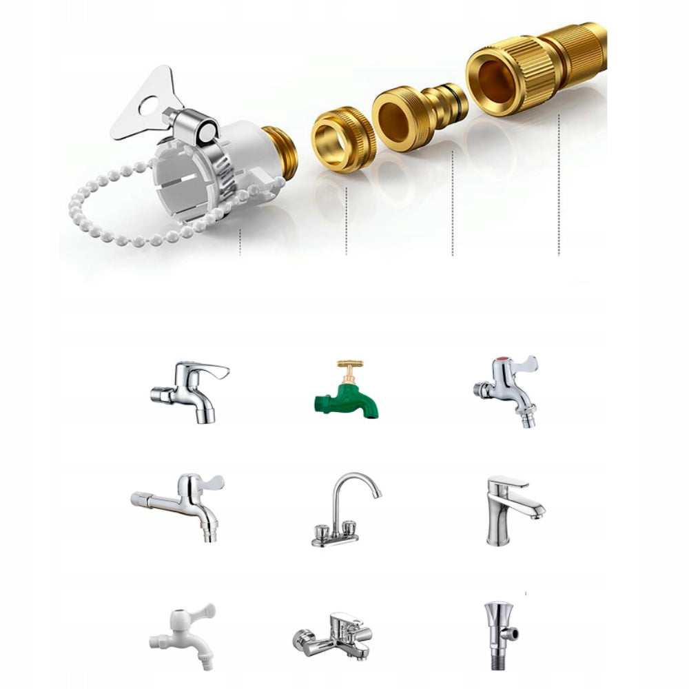 Komplekte su žarna yra movos, kurios leidžia prijungti prie įvairių tipų čiaupų.